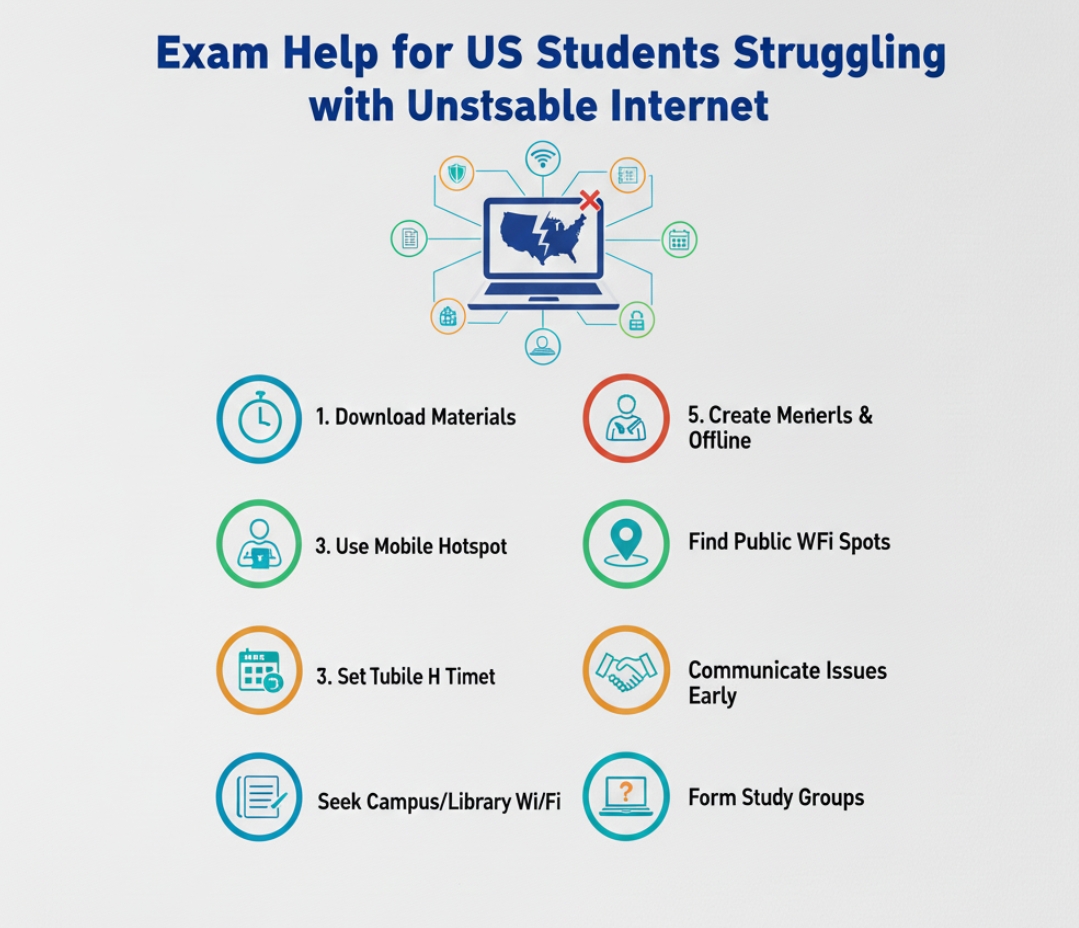 It is already difficult to study to pass exams, but even poor internet makes the situation worse. Too many students are more concerned about Wi-Fi than their responses. Even a minor connection problem will lead to major problems during online exams. Being logged out, frozen screens, or unsuccessful submissions provoke panic. Students fear failure and are likely to be helpless when deprived of marks unduly. You are not alone, in case this is your situation. A lot of US students have the same issue, and it can be controlled.